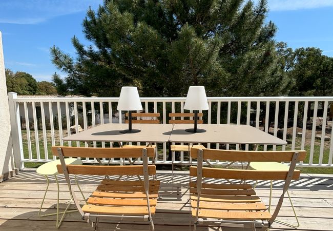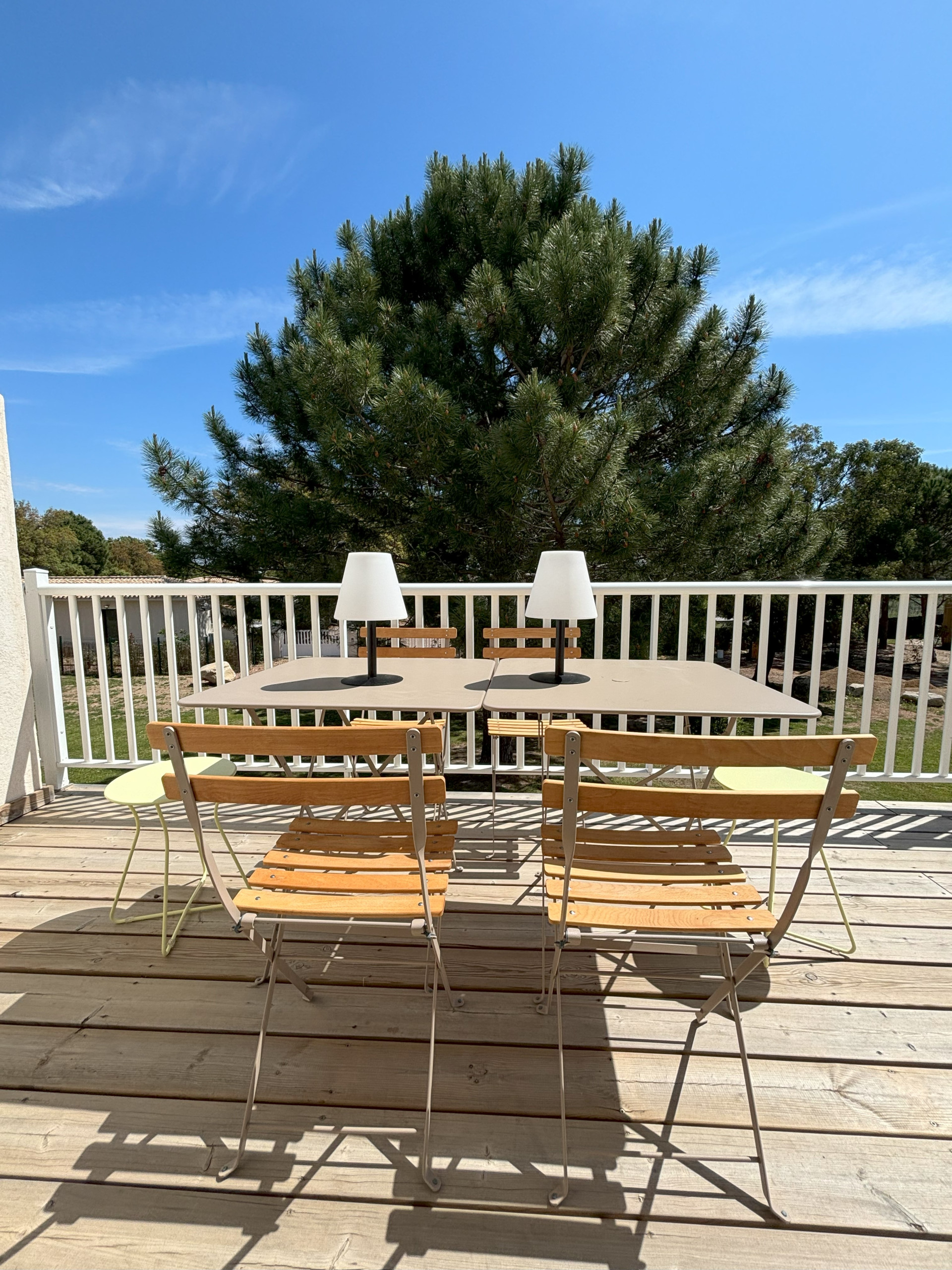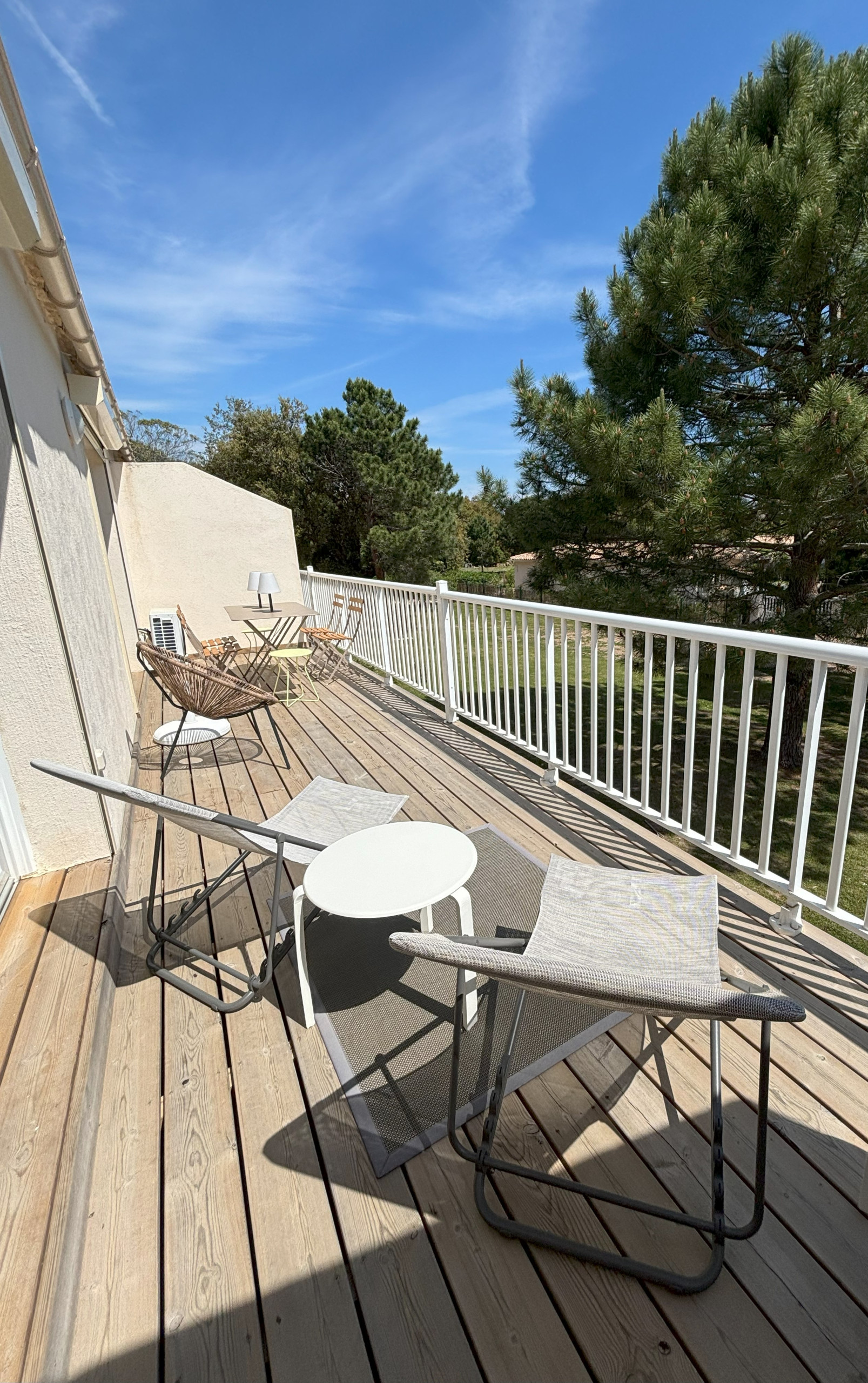 This beautiful apartment renovated in 2022 is located on the 1st and last floor, quiet and without overlooking neighbours. Very bright, it opens onto a large terrace with a view of the garden and pine forest. The entire apartment is carefully decorated and perfectly equipped. The terrace also has quality furniture with an electric barbecue. The living room/kitchen opens onto the terrace; The sleeping area has 2 bedrooms including a spacious master bedroom equipped with 1 large double bed (queen size - 160 cm) with direct access to the terrace and a small bedroom with 2 bunk beds.