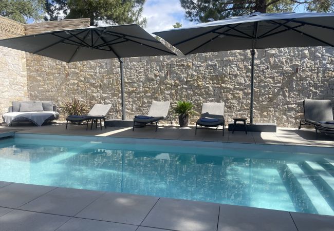 The patio located in the center of the villa is the link connecting all living spaces. It creates a warm atmosphere with a teak table that can accommodate 12 people, cleverly shaded by an IPE pergola, which will ensure convivial meals. A gas barbecue will enhance your family or friends' meals. The (heated) swimming pool is also modern and pleasant with several comfortable sofas and loungers located all around.